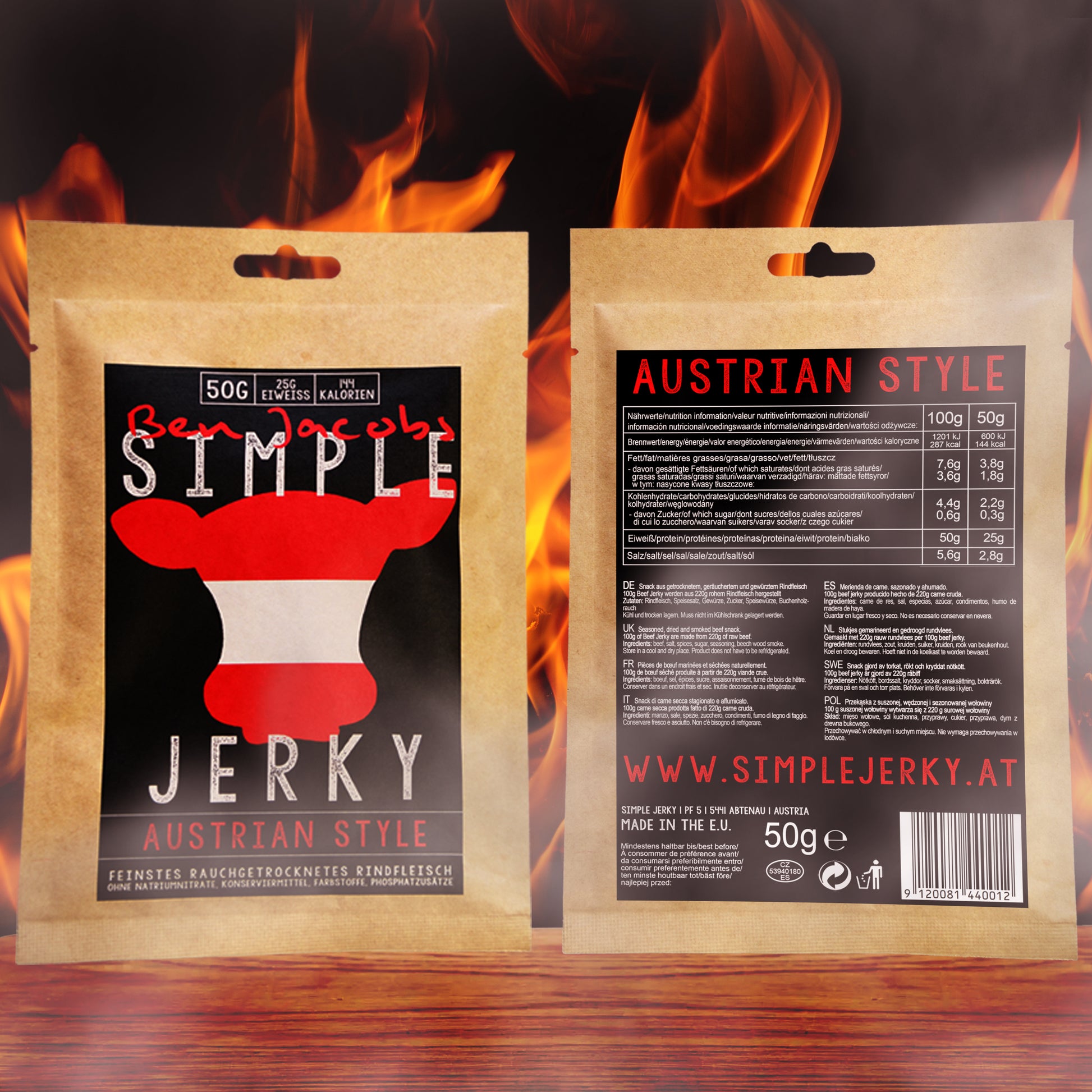 Handmade, 100% natural beef jerky made from Austrian beef.